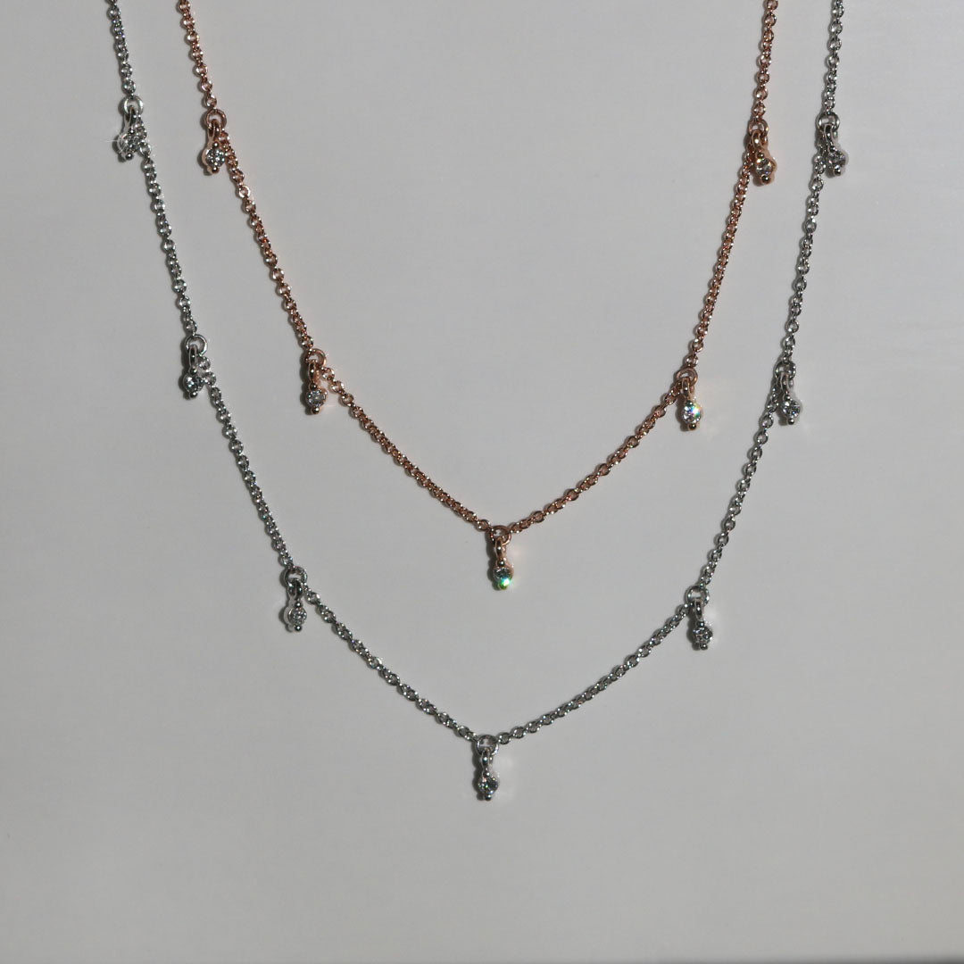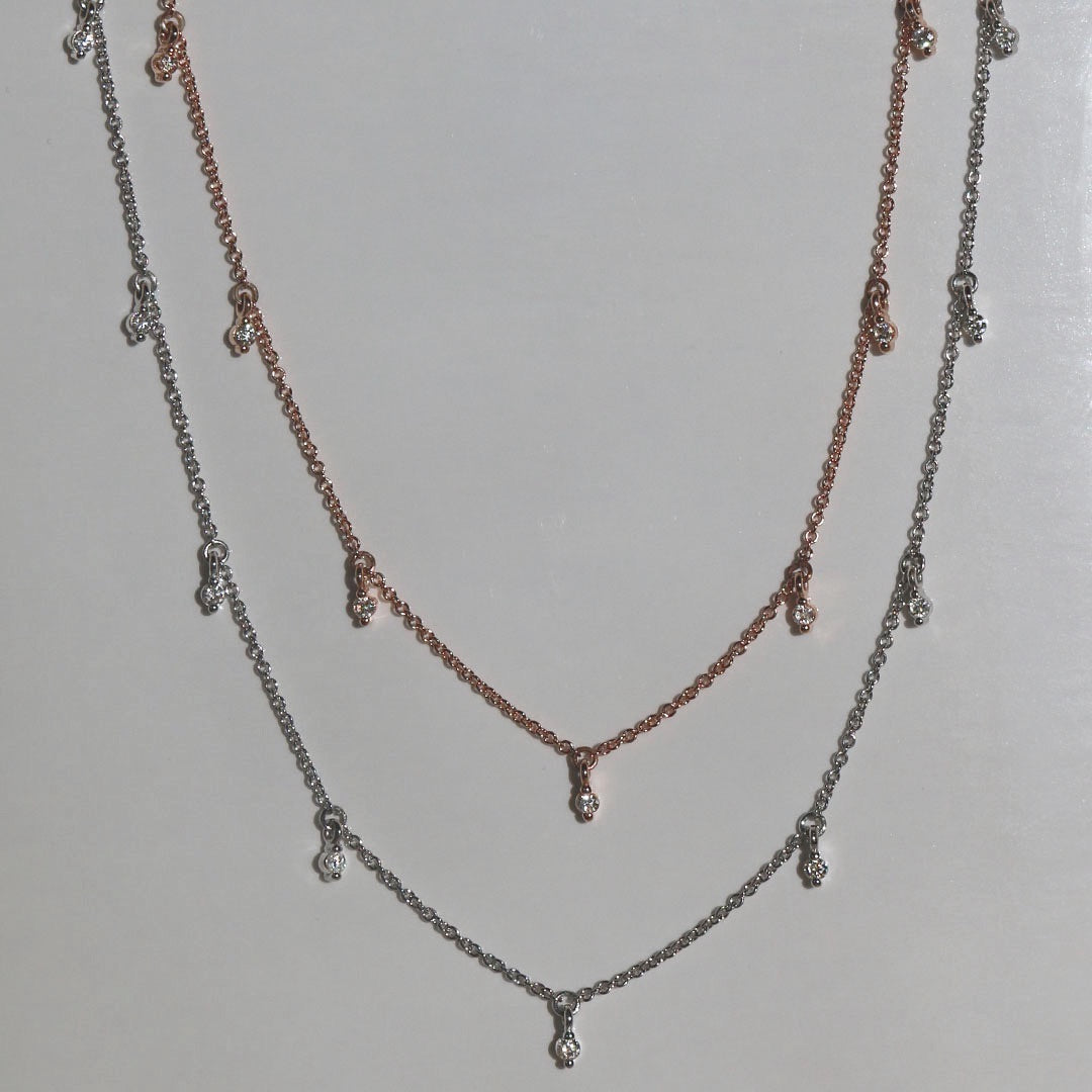The Sofia neckalace will complete your style and will meet your expectations each time, the 15 round diamonds strategically set apart will shine a sparkle in every angle.